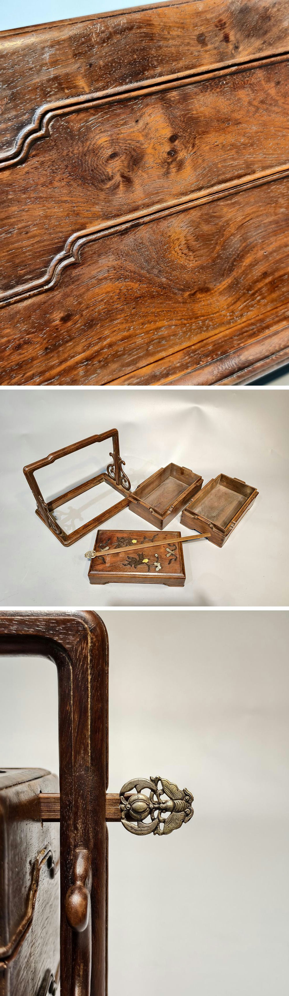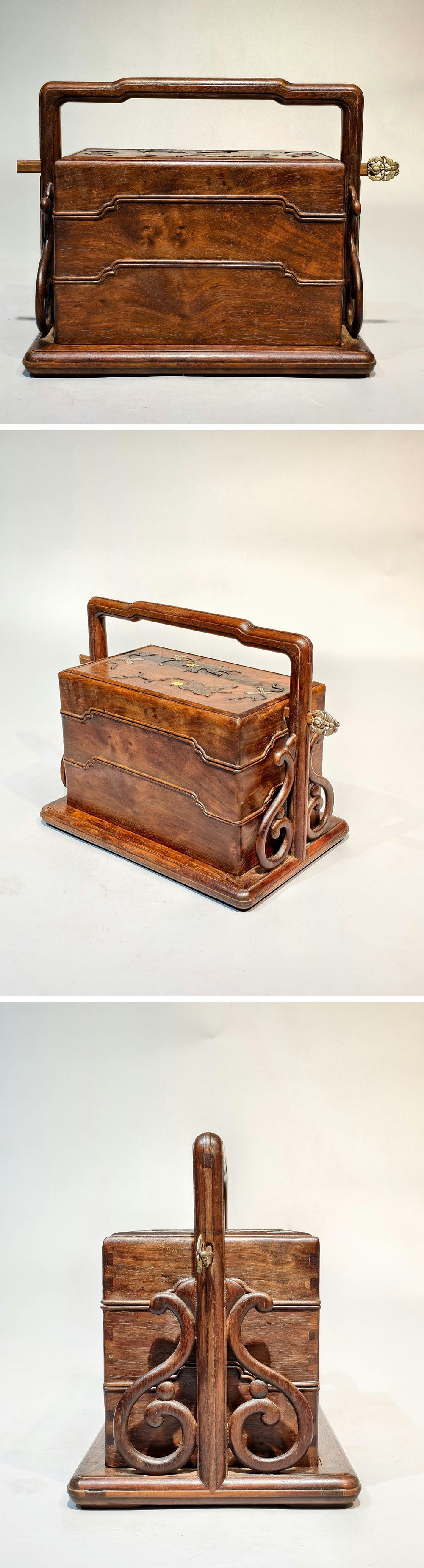 - ▼渡鶴羽▼A7715清時代 黄花梨提箱 黄花梨木細密細工★古置物★古賞物★古擺件★蒐集家放出★唐物