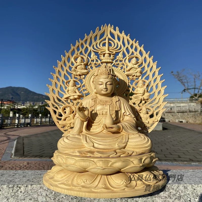 - 精密彫刻 蓮華丸台座 浄瓶観音 木彫仏教 高さ40cm【送料無料】【仏具仏像専門店寶勝堂】