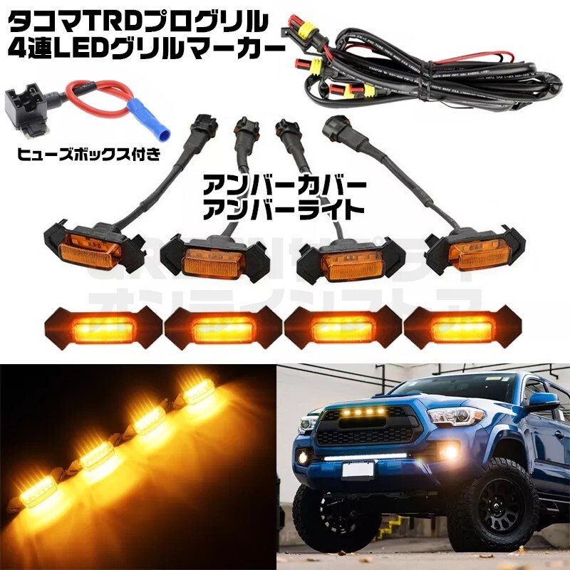 - タコマ TRD グリル マーカー 4連 LED トヨタ アンバー カバー