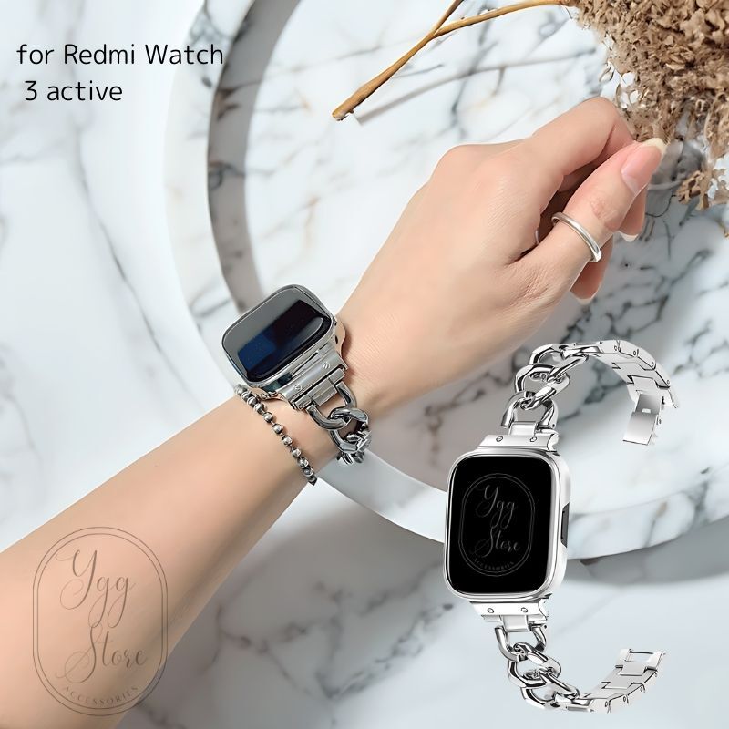 - Redmi Watch 3 Active Xiaomi 交換バンド 一体型 保護ケース 調節工具付き チェーン シルバー 保護カバー レドミー ウォッチ アクティブ