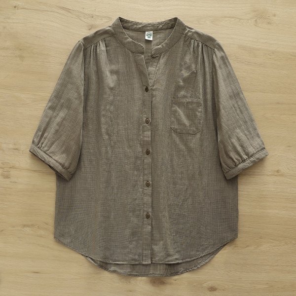 - c 2508 ダブルガーゼ フリーサイズ チュニック トップス ナチュラル 綿100% 通気性肌触り抜群 サラサラ ゆったり Vネック チェック柄2