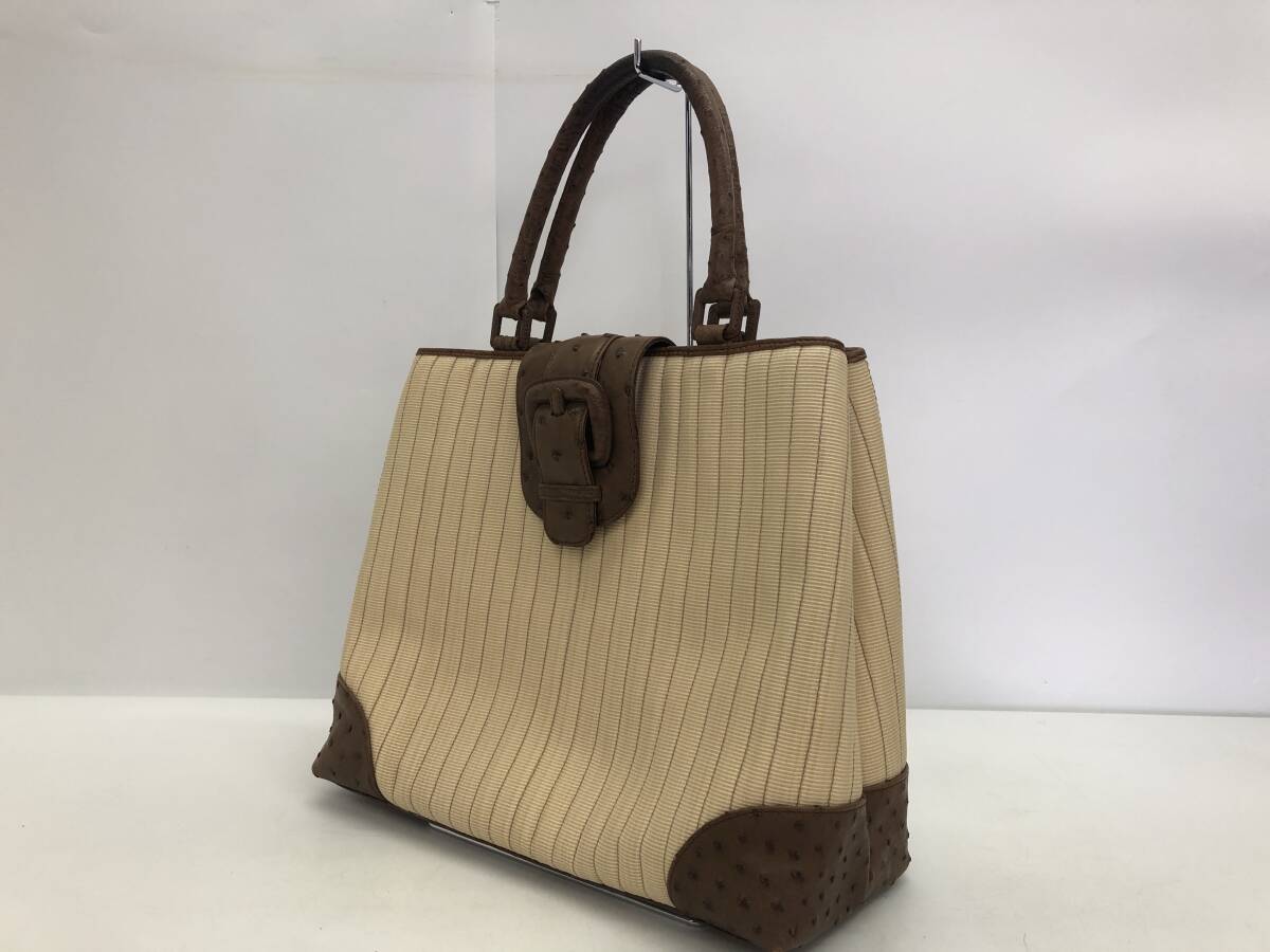 - 良品 Hamano ハマノ バッグ トートバッグ ハンドバッグ オーストリッチ ベージュ×ブラウン レディースバッグ 女性用 通勤