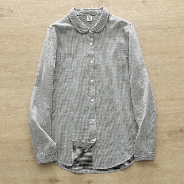- c 2508 ダブルガーゼ フリーサイズ ワイシャツ チュニック トップス ナチュラル 綿100% 通気性肌触り抜群 サラサラ ストライプ 4