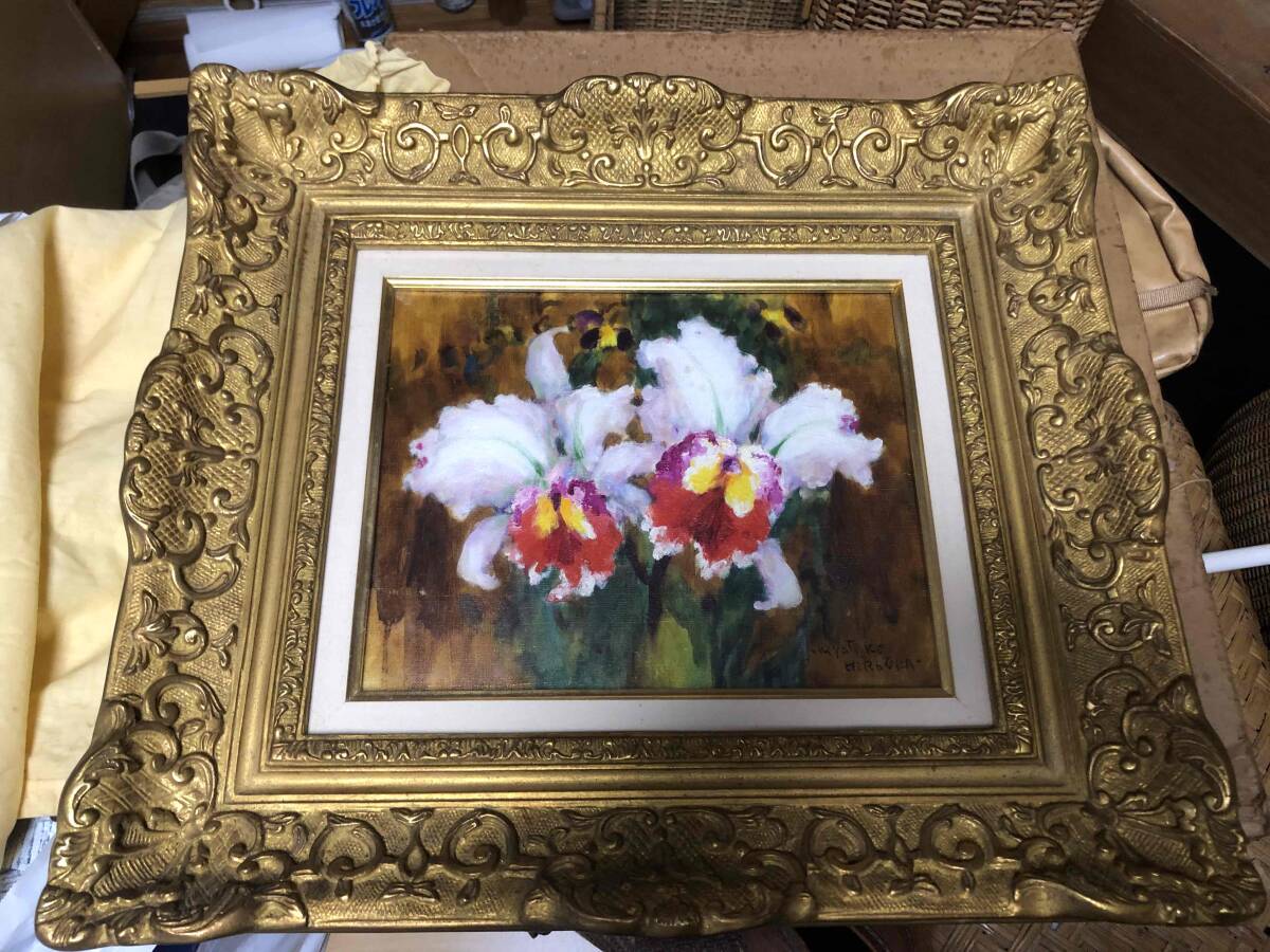 - 【肉筆/太陽画廊】「真作」広岡清武「カトレア」F3号 油彩画 額装 箱・袋付き 花 蘭 静物画 現代美術