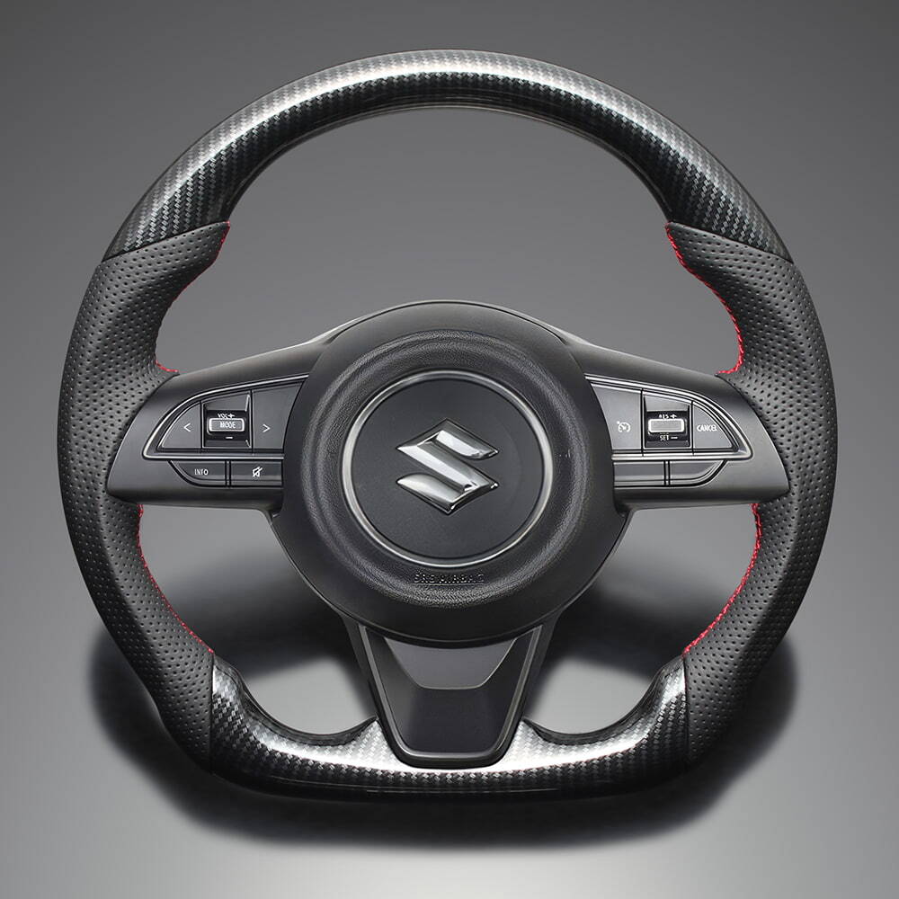 - FEGGARI スイフトスポーツ ZC33S ステアリング ブラックカーボン調 x PVCレザー(ダークグレー) x レッドステッチ / LS290 フェガーリ