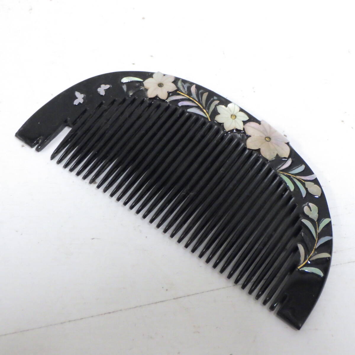 - 昭和 レトロ アンティーク 本漆 螺鈿尽くし 青貝菊 櫛笄 かんざし 折れあり ジャンク