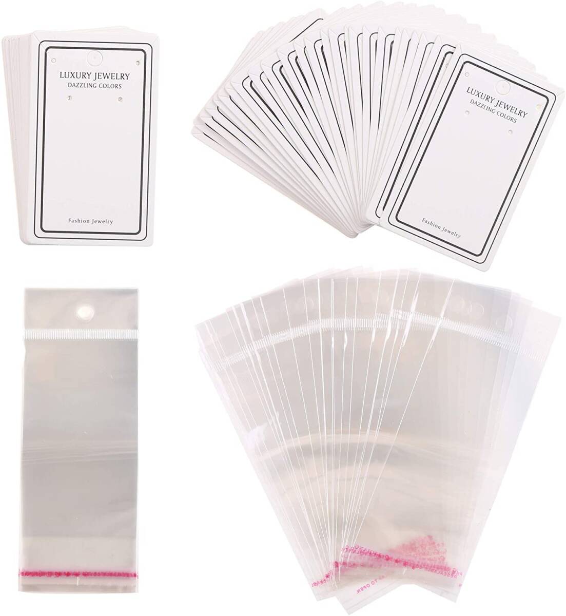 - ディスプレイ イヤリング カード ピアス ラッピング セット 50枚 袋 120×60mm パーツ 袋付 収納 OPP 台紙 (5