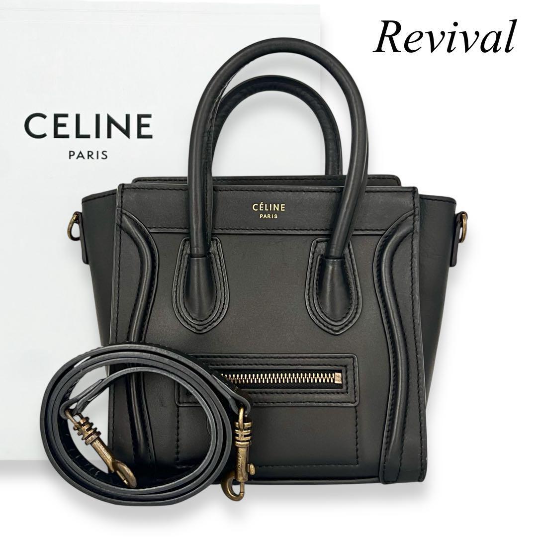 - 【美品】セリーヌ レザー ラゲージナノショッパー ショルダーバッグ 黒 444