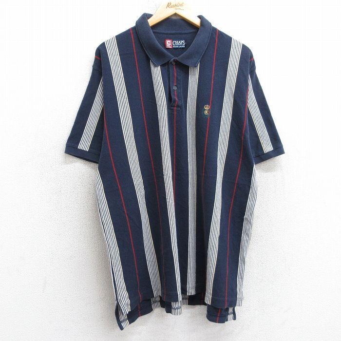 - XL/古着 ラルフローレン チャップス 半袖 ブランド ポロ シャツ メンズ 90s ワンポイントロゴ 鹿の子 大きいサイズ 紺他 ネイビー ストライ