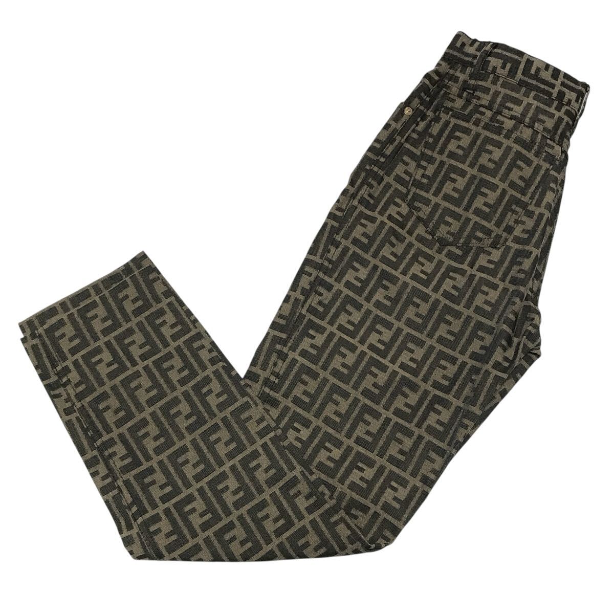 - 【フェンディ】本物 FENDI ボトムス ロゴモチーフ ズッカ柄 FF模様 サイズ28 ズボン パンツ スラックス コットン レディース イタリア製