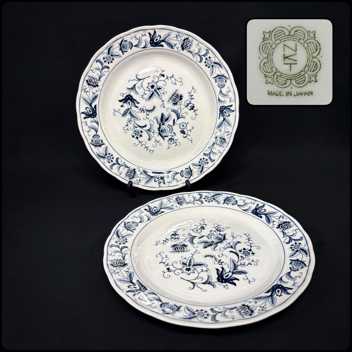 > ヴィンテージ NIKKO ミングトゥリー プレート 2枚セット 直径23cm 日本硬質陶器 NKT印 ブルーオニオン 中皿 洋食器 (08097E