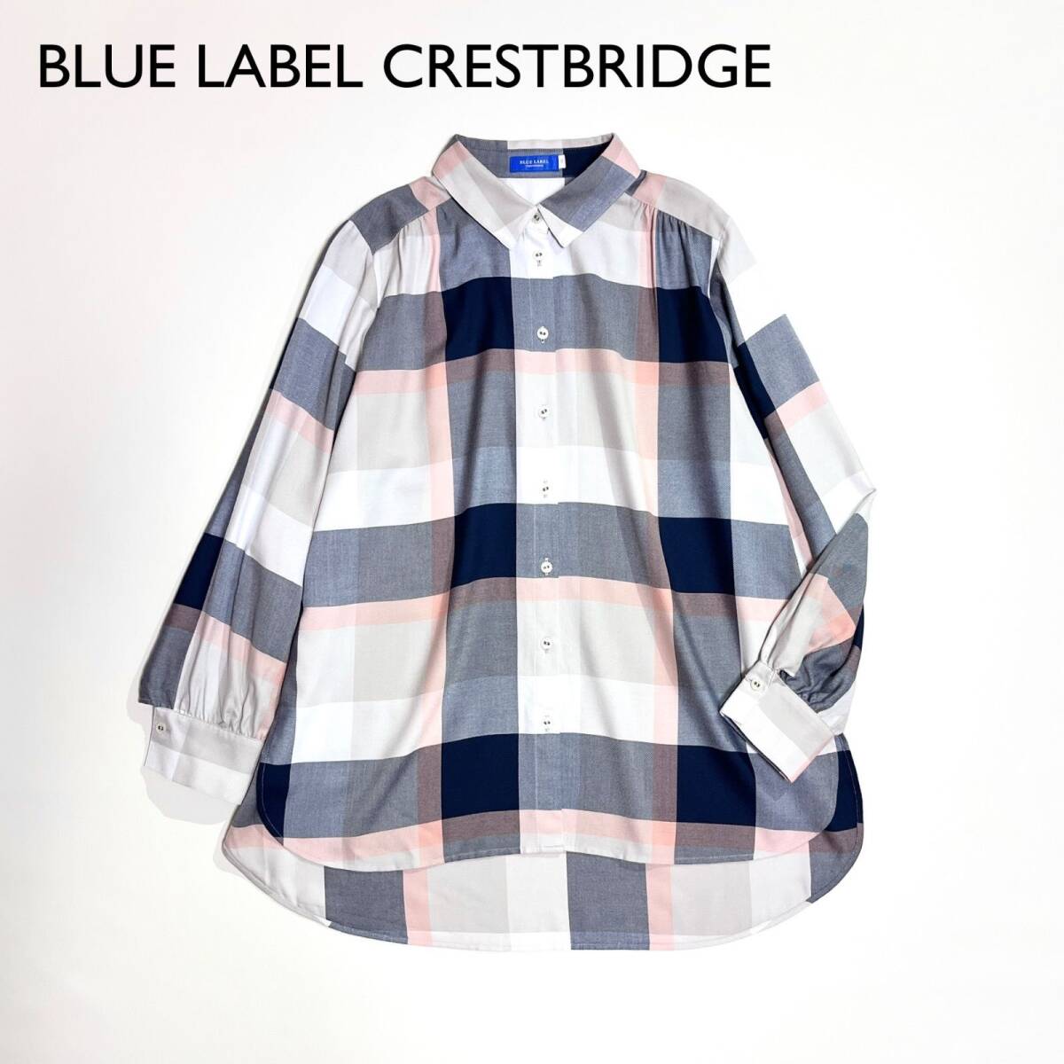 > ch08 BLUE LABEL CRESTBRIDGE ゆったりシャツ 総柄チェック柄 長袖 ギャザーブラウス 襟 タターンチェック柄