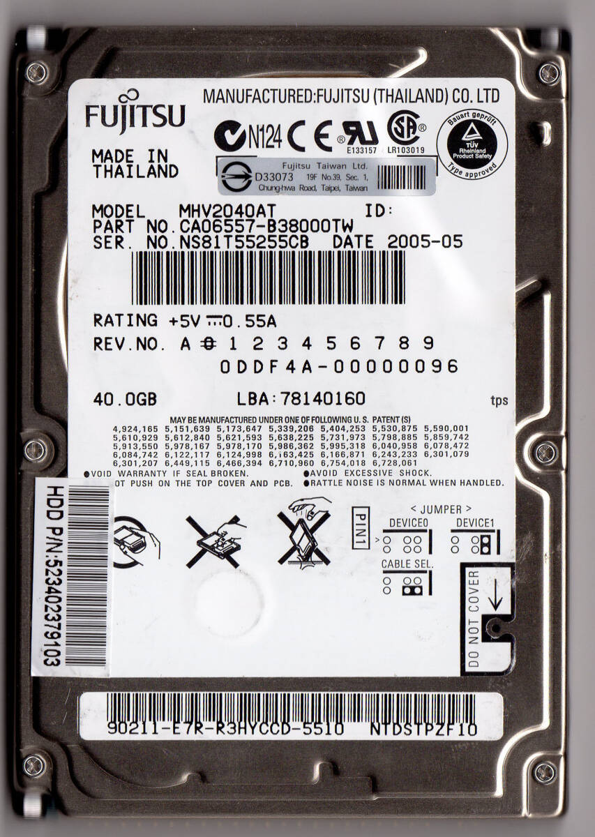 - 富士通 FUJITSU MHV2040AT 40GB 4200rpm 2.5インチ HDD USED品