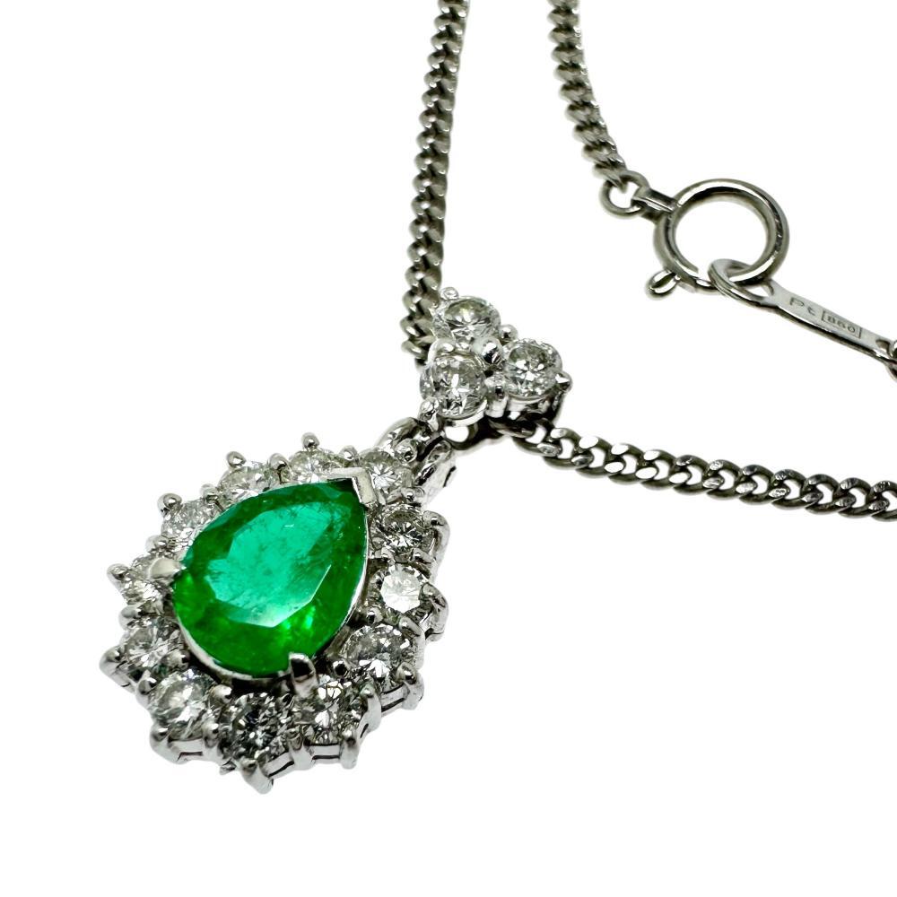 - エメラルド 0.75ct ダイヤモンド 計0.75ct ネックレス Pt900プラチナ/Pt850プラチナ 10.0g 41cm レディース