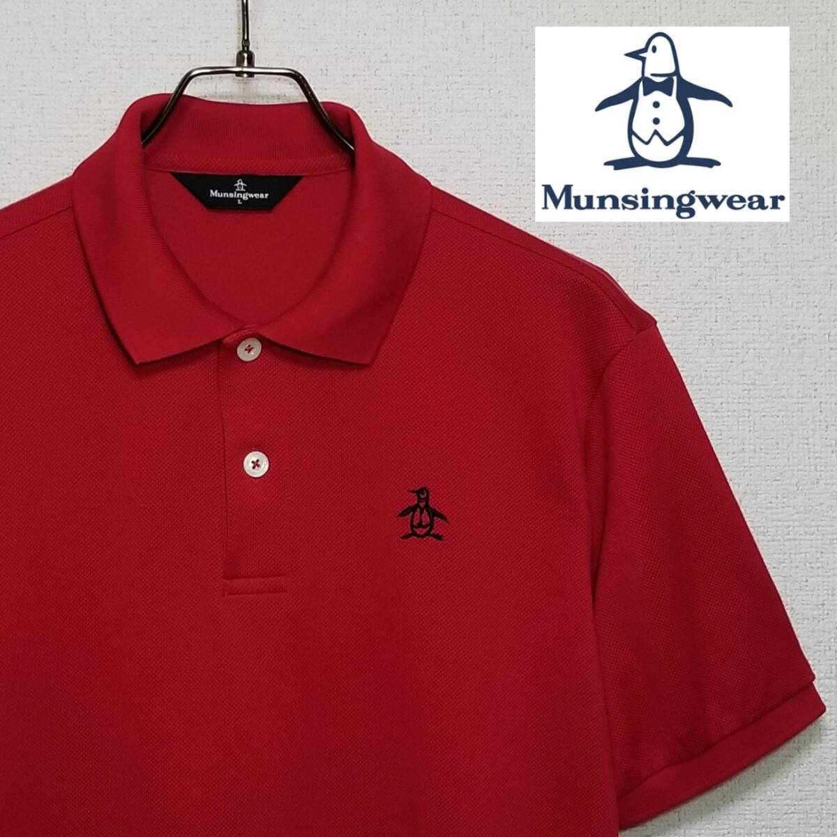 - 【デサント製/美品】◎ Munsingwear マンシングウェア/ 半袖 ワンポイント刺繍ロゴ 鹿の子ポロシャツ SIZE: L ダークレッド