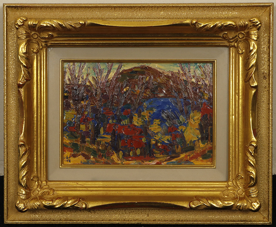 - 【真作 裏に自署有】「小林和作 湖畔の秋 額装 SM」絵画 大正昭和 洋画家 川北霞峰師事 鹿子木孟郎・梅原龍三郎・中川一政親交 文部大臣賞