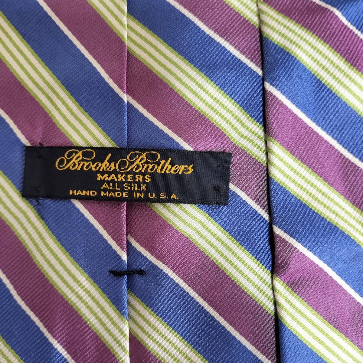 - ブルックスブラザーズメーカーズ(Brooks Brothers MAKERS)紫緑青ストライプ模様ネクタイ