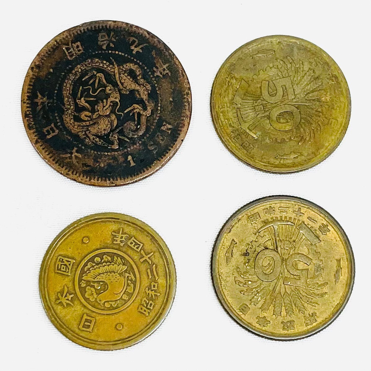 - D67 古銭 まとめ 明治9年 1銭 昭和21年 50銭 昭和24年 5円 アンティーク レトロ 硬貨
