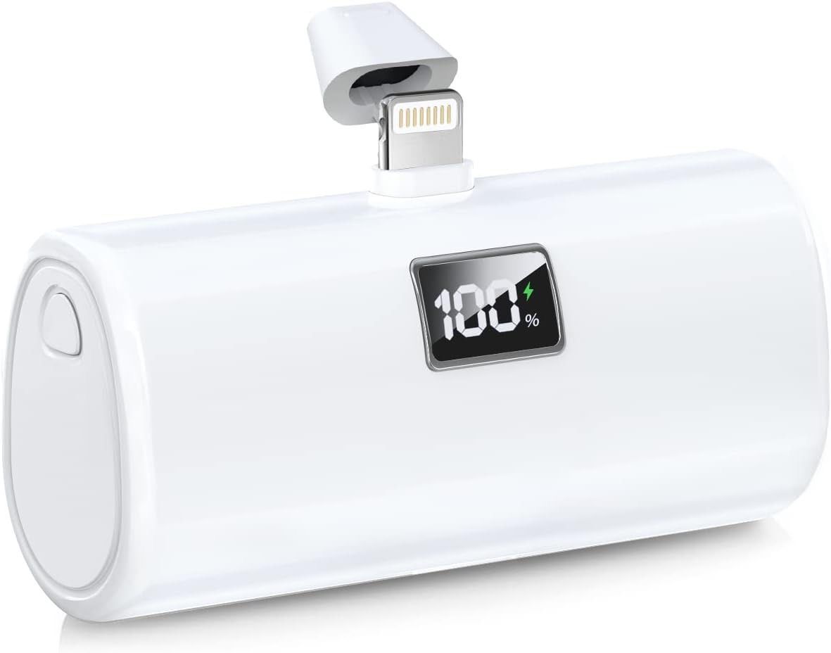 - モバイルバッテリー MFi正規認証品 iPhone 14シリーズまでに対応 5000mAh Lightningコネクター内蔵 Type-C入力 急速充電 PSE認証 機内携帯