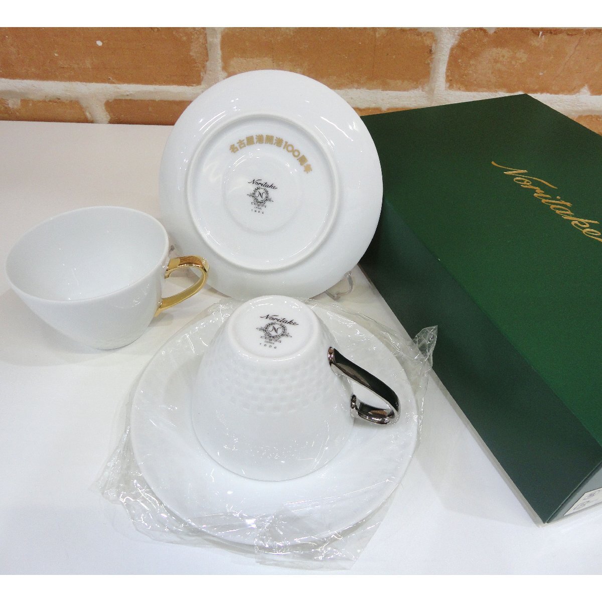 - 8743 未使用品 名古屋港開港100周年 ノリタケ Noritake C/S アミ カップ&ソーサー ペアセット 色変わり 碗皿 展示品