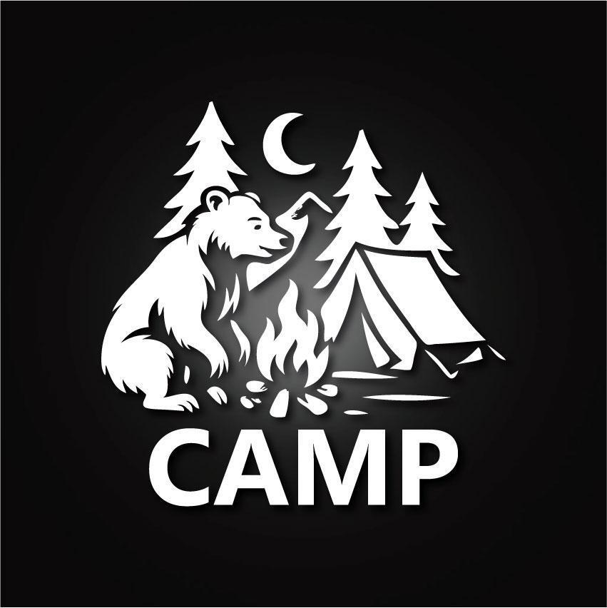 - キャンプ アウトドア 熊 焚き火 カッティングステッカー 防水 耐候性 転写シール 色変更可能
