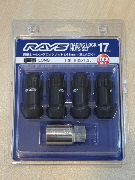 > 【即納】RAYS レイズ レーシングロックナットセット 60°テーパー座 貫通タイプ 17HEX L48 M12 P1.25 4個セット