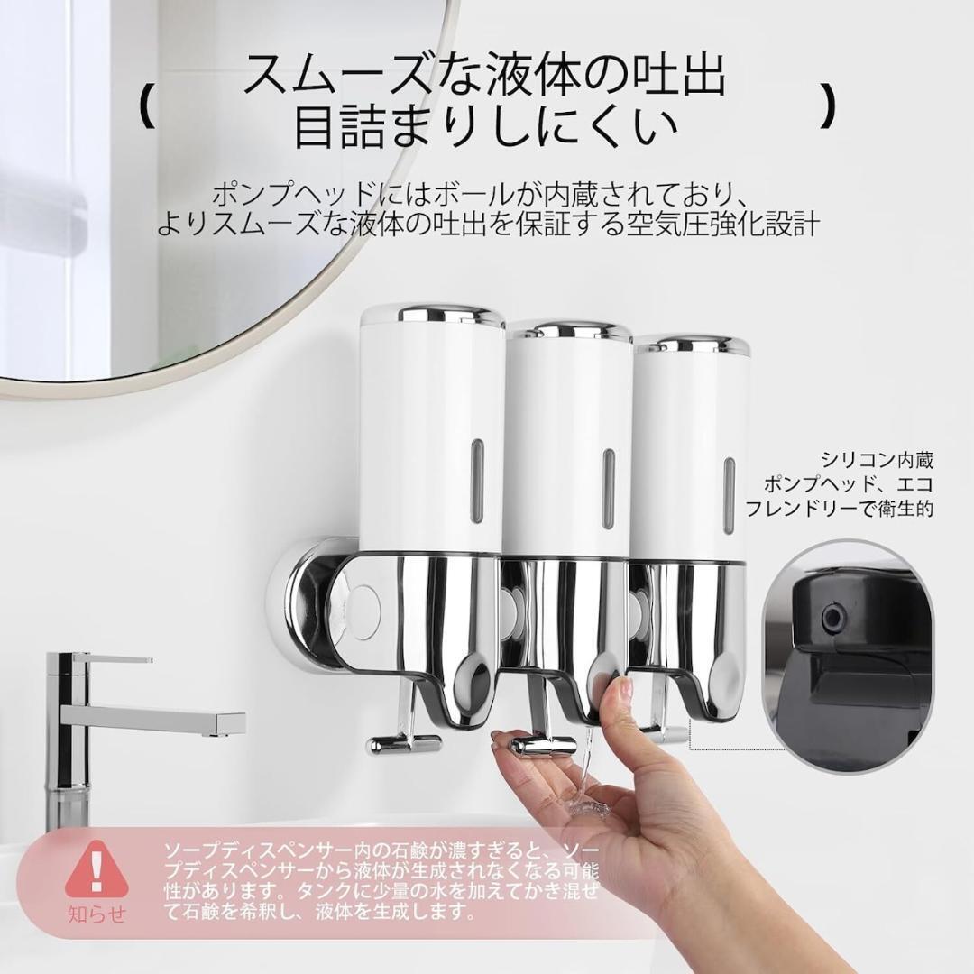 - 訳アリ【3本セット】シャンプーディスペンサー 壁掛け式 バス収納 ホワイト Z601