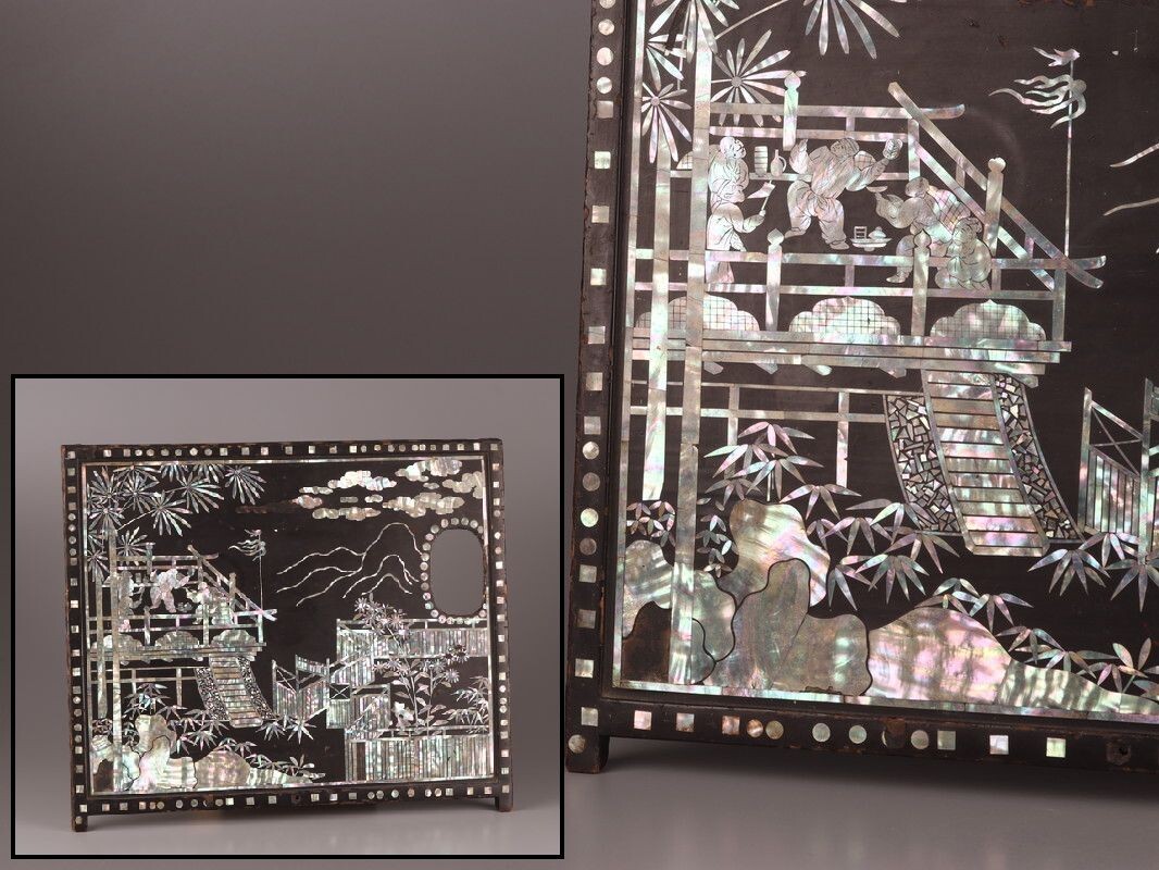 - 中国古玩 唐物 木製漆塗 螺鈿細工 板 時代物 極上品 初だし品 D4043