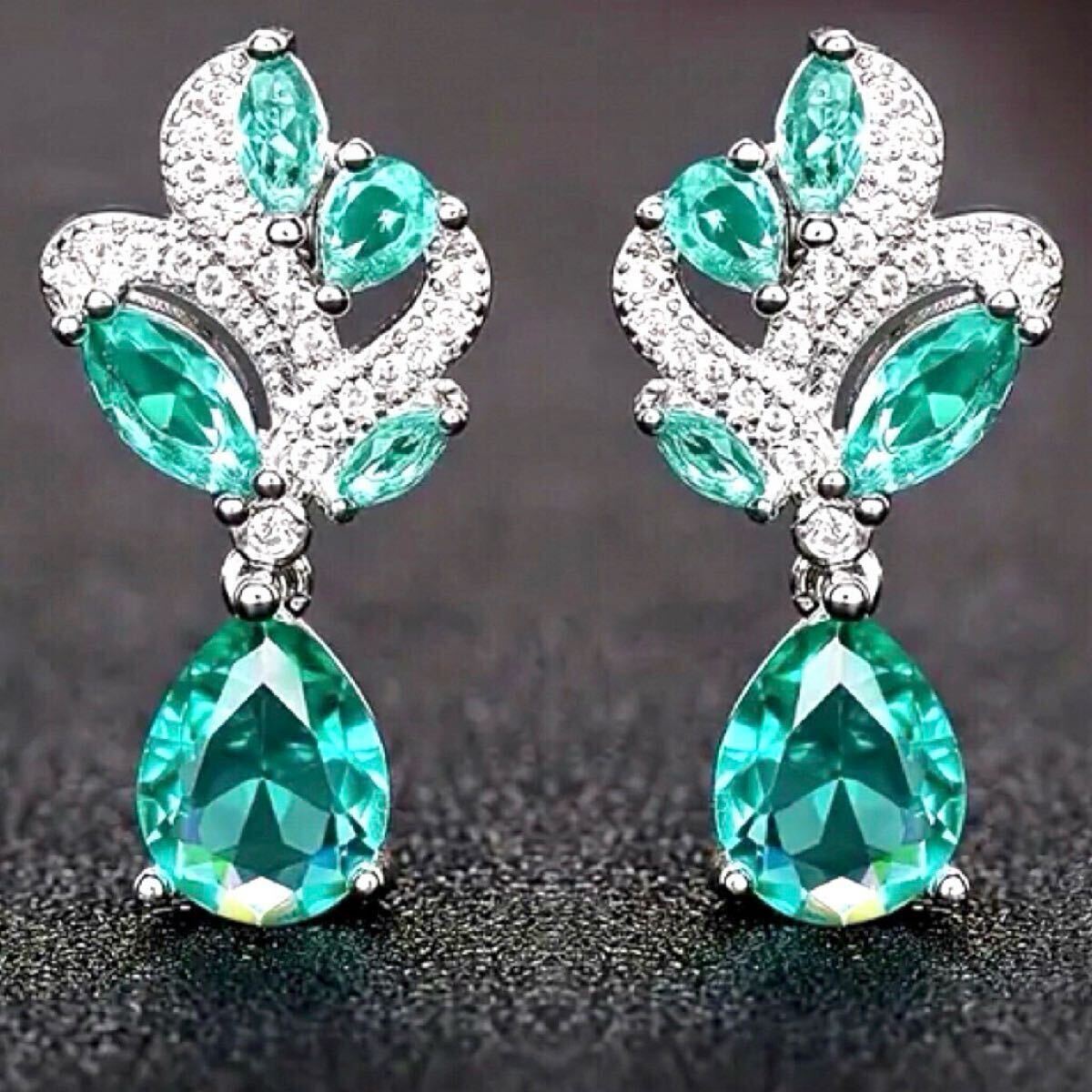 - ラインストーンピアス ジルコニアピアス ビジューピアス 揺れるピアス 人工ダイヤモンドピアス エメラルドグリーンピアス 新品