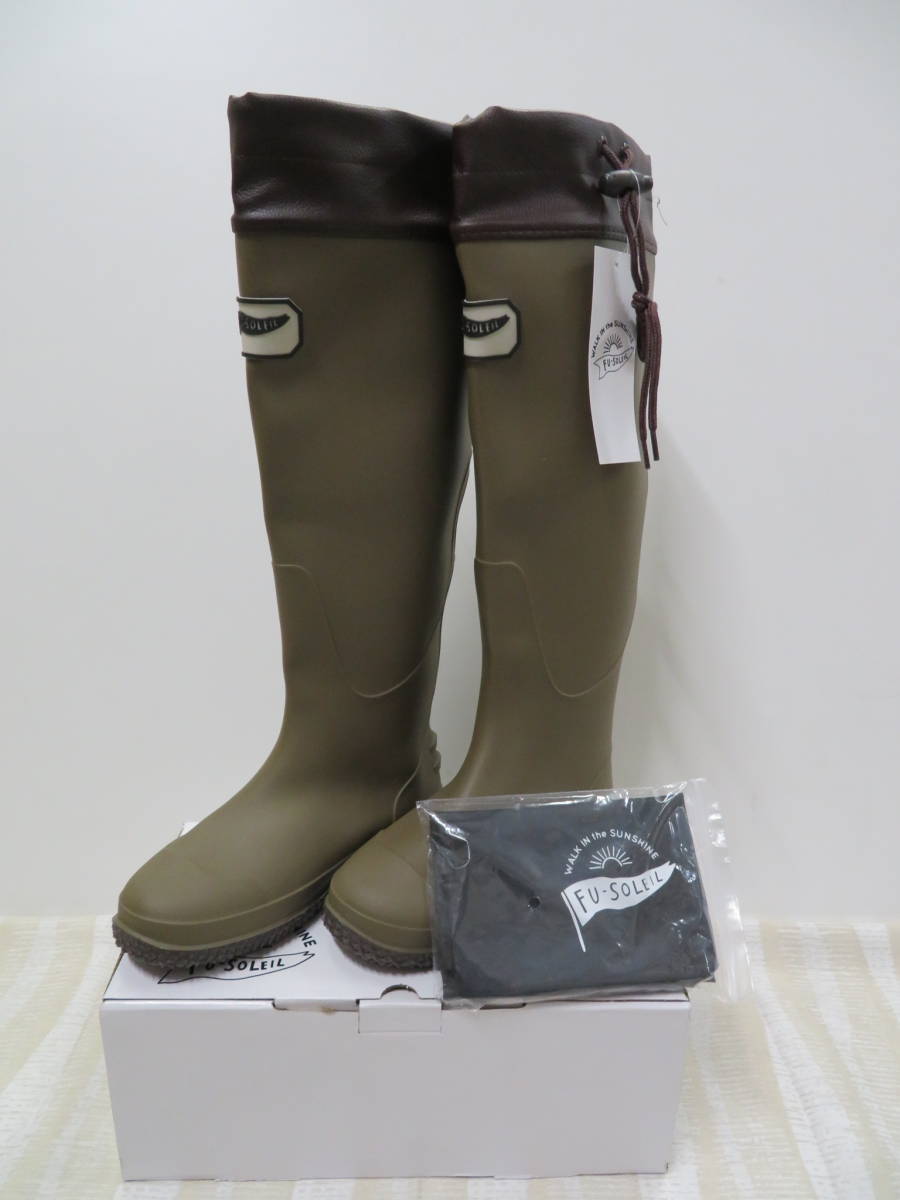 - ビックイナバお薦め!阪神素地 男女兼用・PVCポータブル長靴FU-5501【カーキ/S/23.5-24.0cm】フラット底・収納袋付の品、即決2990円☆