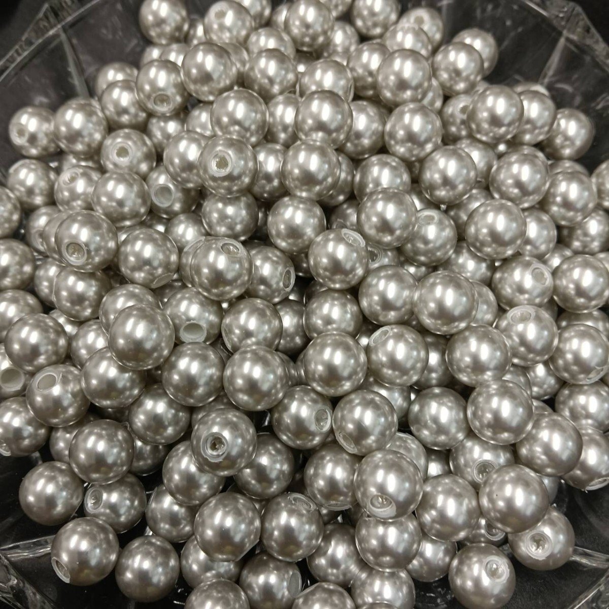 - ☆未使用 大量 片穴 パール ビーズ ラウンド 約282g 12mm グレー系 イミテーション 大粒 ヴィンテージ アクセサリー ネックレス S-342