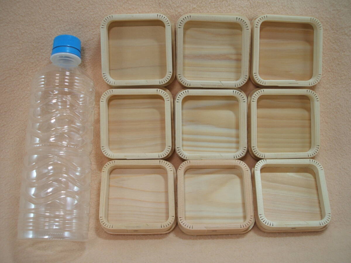 - ひのき製 折敷 (8×8cm) 9個 新品 未使用 おしき おりしき 中式 ちゅうしき 供物台 盆 洗米 皿 かわらけ 正月 小餅 神棚 神具 方形 神仏