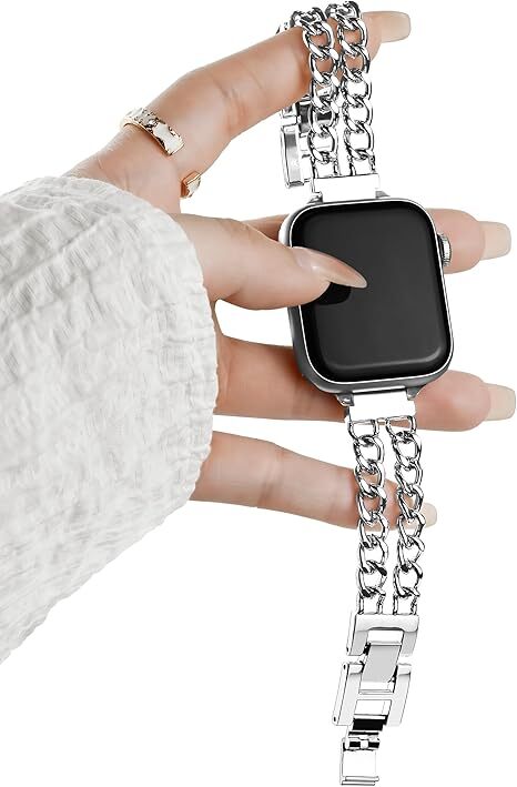 - アップルウォッチ バンド 38mm 40mm 41mm 42mm 超細ダブルチェーン メタル ベルト レディース シルバー Apple Watch