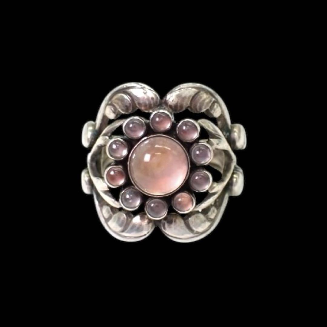 - Georg Jensen ジョージジェンセン #10 ムーンライトブロッサム リング ローズクォーツ ピンク 925 スターリングシルバー シルバー 3792