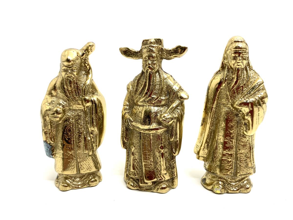 - C93 中国 金属置物 福禄寿 3体セット 開運 縁起物 約8cm 金色