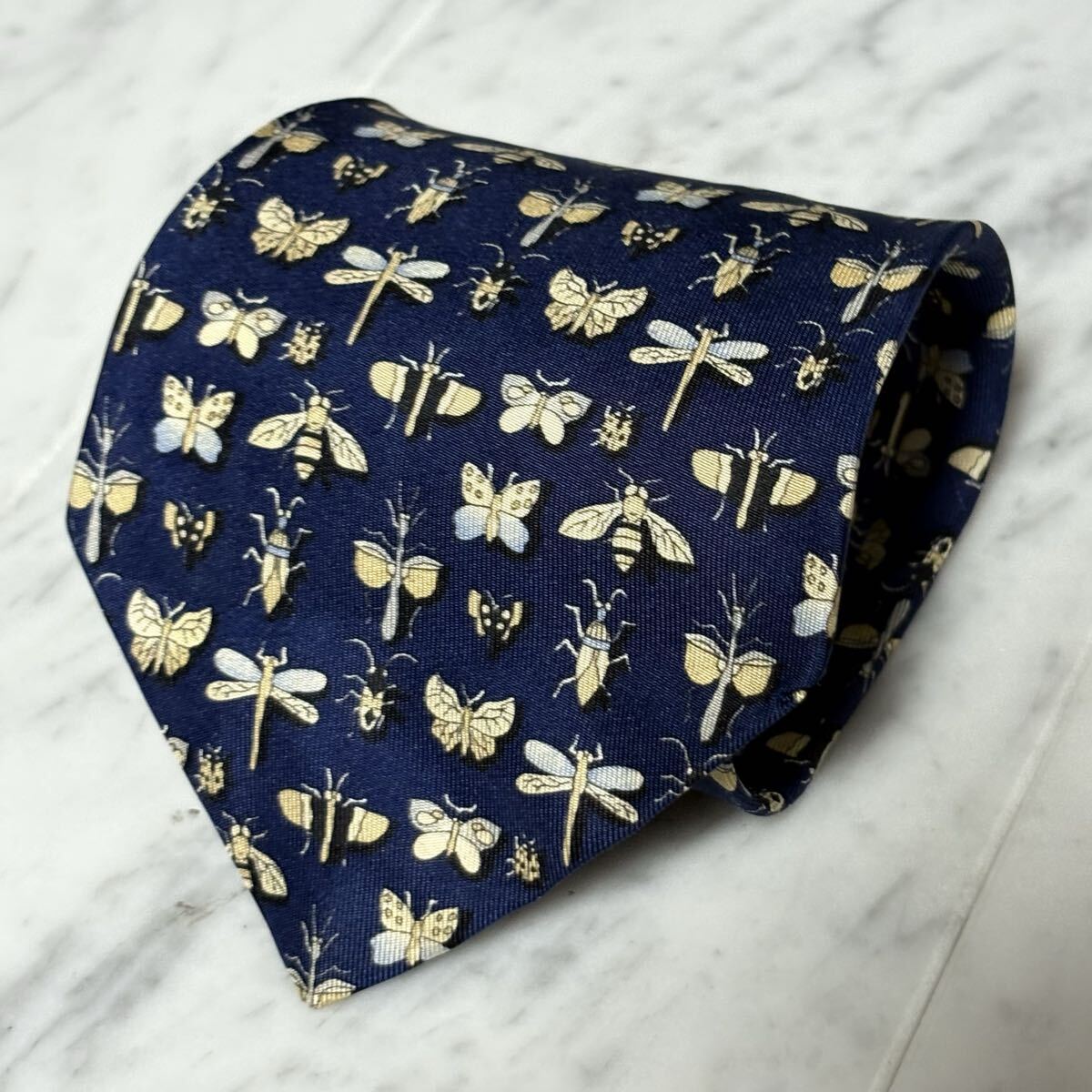- 999円~ Ferragamo ネクタイ ネイビー 昆虫柄 (B14)