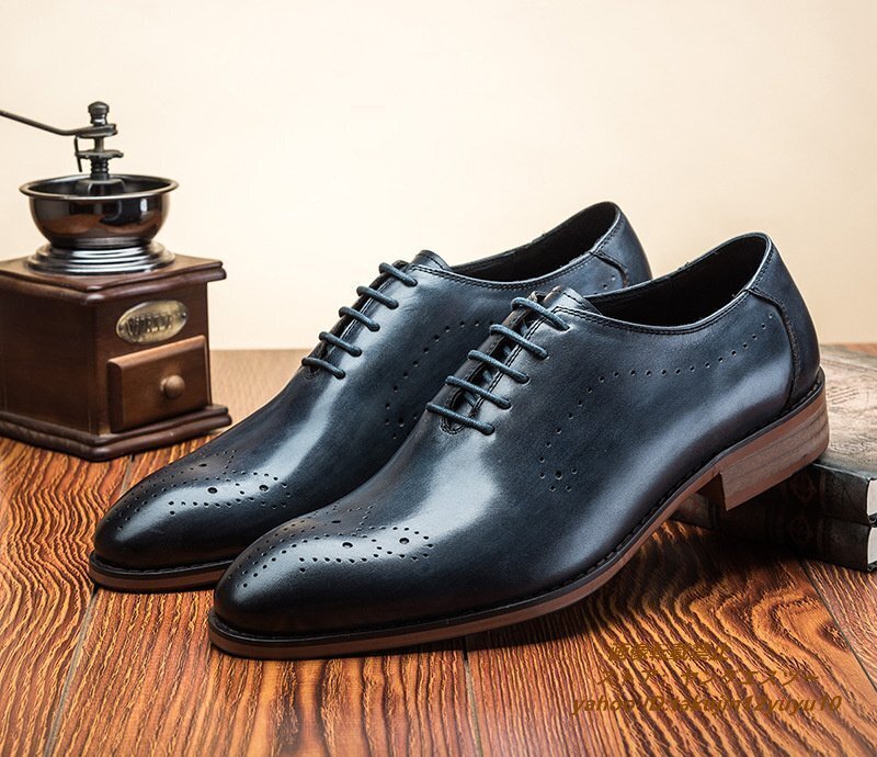 - 最上級◆定価9万 全本革 レザーシューズ 牛革 ビジネスシューズ 職人手作り 紳士靴 手塗仕上げ 高級牛革 革靴 フォーマル ブルー 26.0cm