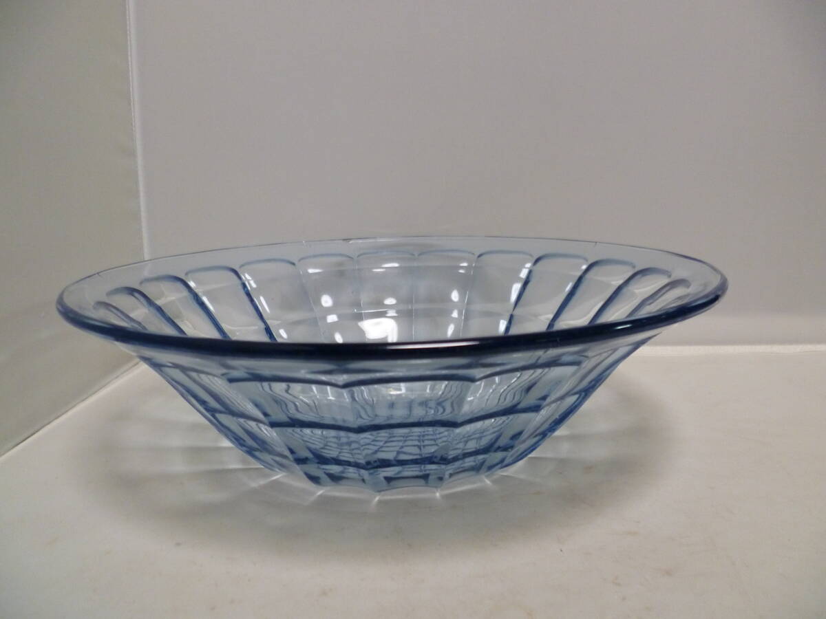 - アンティーク 昭和レトロ プレスガラス ブルー系 気泡入り 大鉢 1客