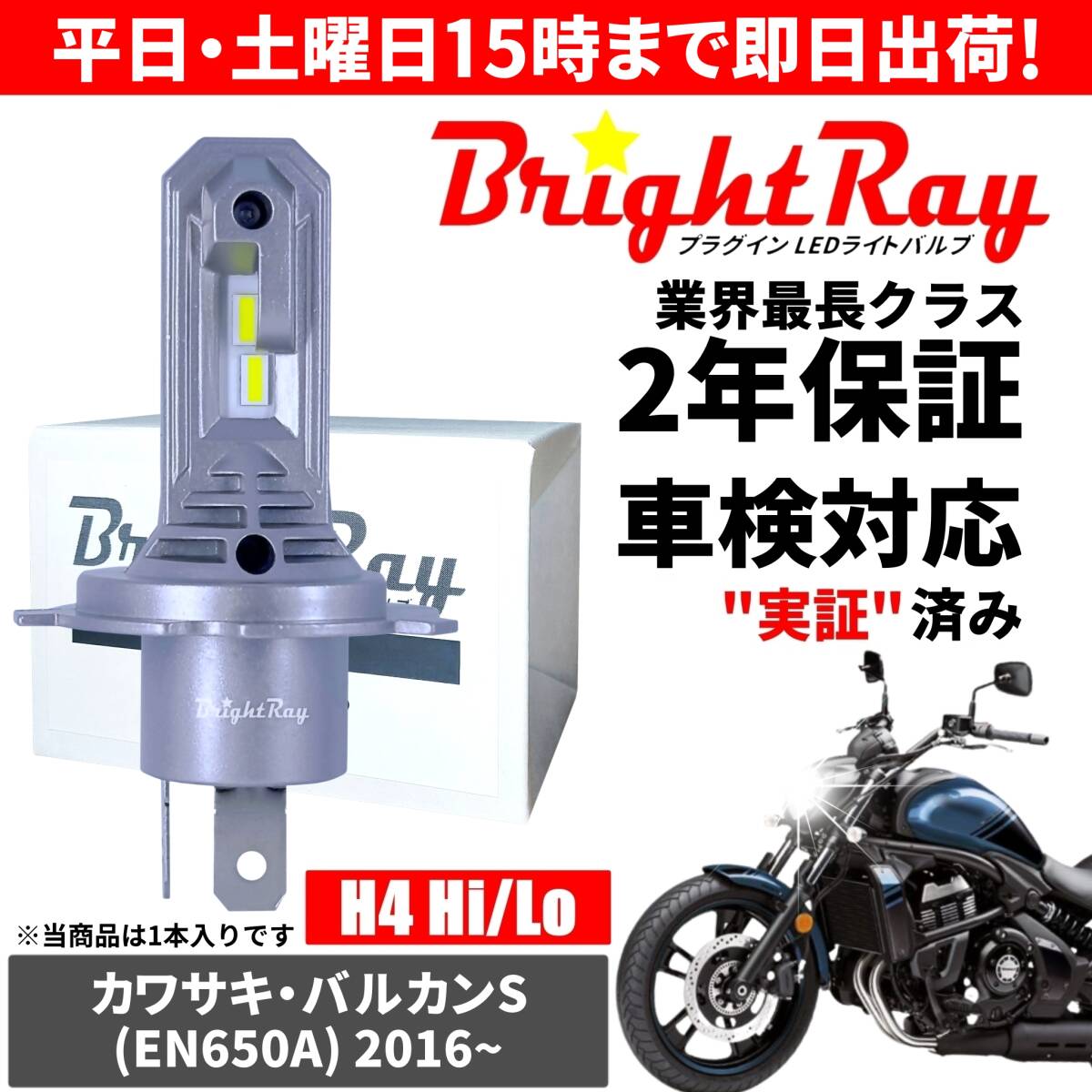 - 送料無料 2年保証 カワサキ バルカンS EN650A LED ヘッドライト BrightRay バルブ H4 Hi/Lo 6000K 車検対応 ハロゲンから簡単交換