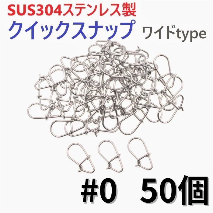> 【送料無料】SUS304 ステンレス製 強力クイックスナップ ワイドタイプ #0 50個セット ルアー用 防錆 スナップ