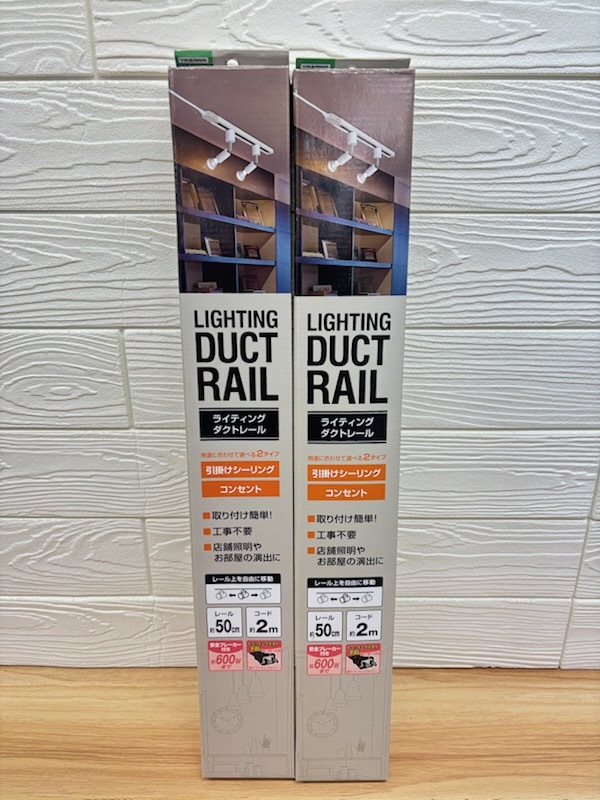 - A259 新品 2点セット YAZAWA 取り付け簡単♪穴あけ不要 取り付け方法が選べる 2タイプ 50㎝ ライティングダクトレール アイボリー