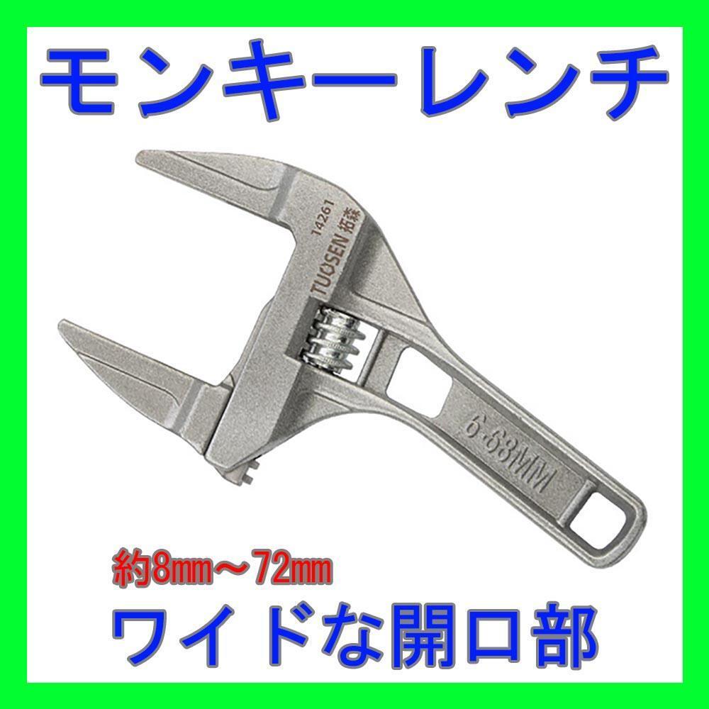 - モンキーレンチ ワイド 大開口 軽量 薄型 配管 たて型 レンチ 水栓レンチ