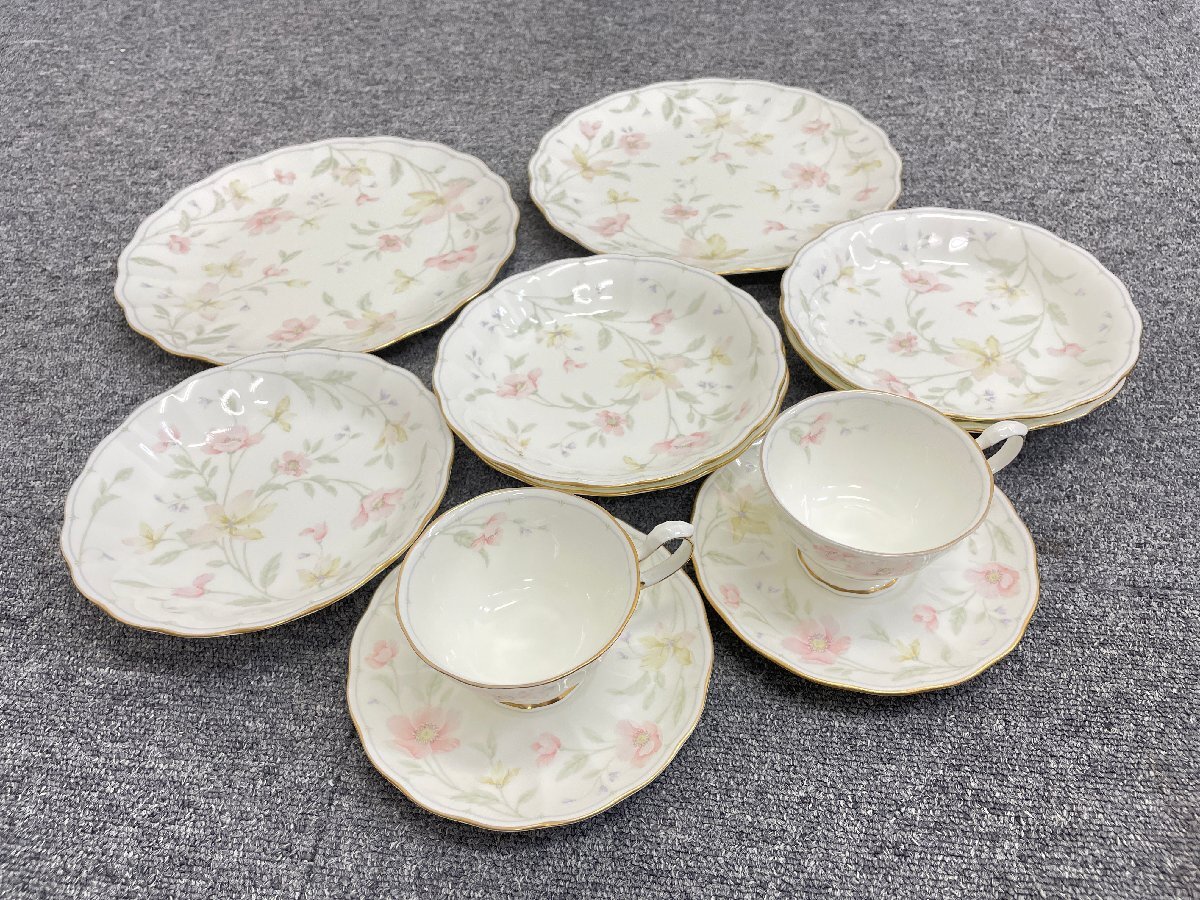 > NARUMI/ナルミ パステル ガーデン 花柄 金彩 プレート 皿 ティーカップ&ソーサー ペア まとめて 陶器 洋食器 日本製