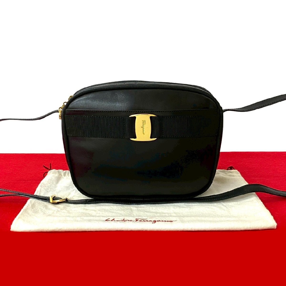 - 極 美品 袋付 Salvatore Ferragamo サルヴァトーレフェラガモ ヴァラ 金具 レザー 本革 ショルダーバッグ ポシェット ブラック 44994