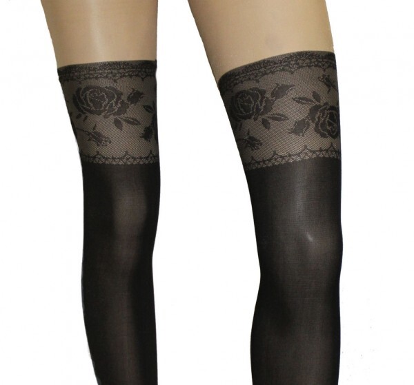 - NA 薔薇 フェイク ニーハイタイツ ニーハイソックス バラ BST580 黒 60デニール