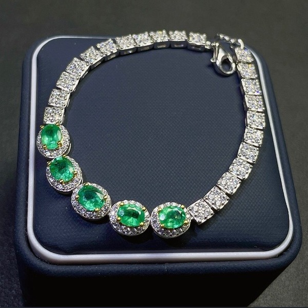 > 天然エメラルド シルバーブレスレット、鑑別付き、問合せで値下げ、残り時間4日までに最初に入札すると開始価格で購入可能_Yu