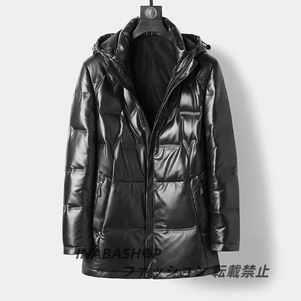 - メンズ本革フード付きジャケット,90% グースダウン,ウォーム,ナチュラル,冬,新作コレクション L-4XL
