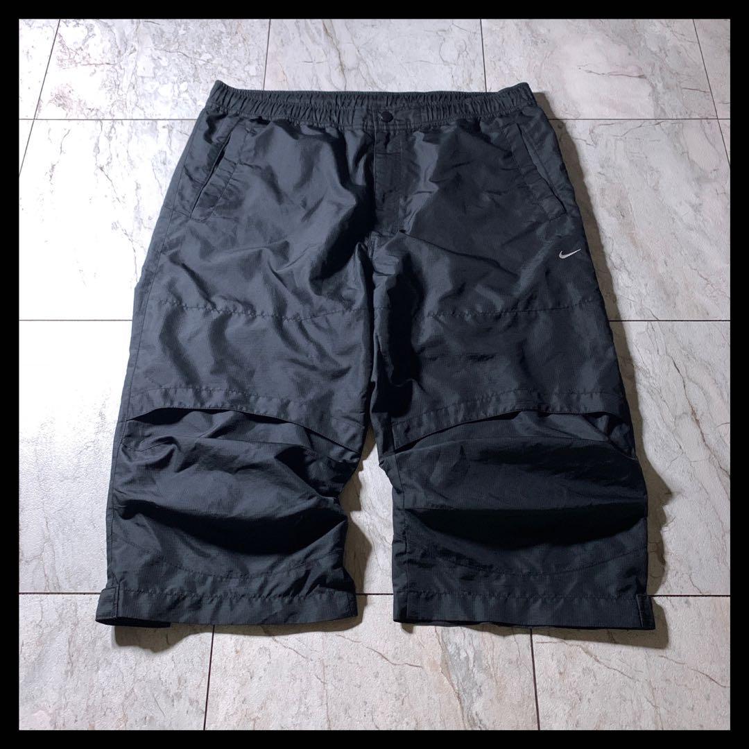 - 00s NIKE 立体裁断 クロップド ナイロンパンツ ブラック 膝下 七分丈