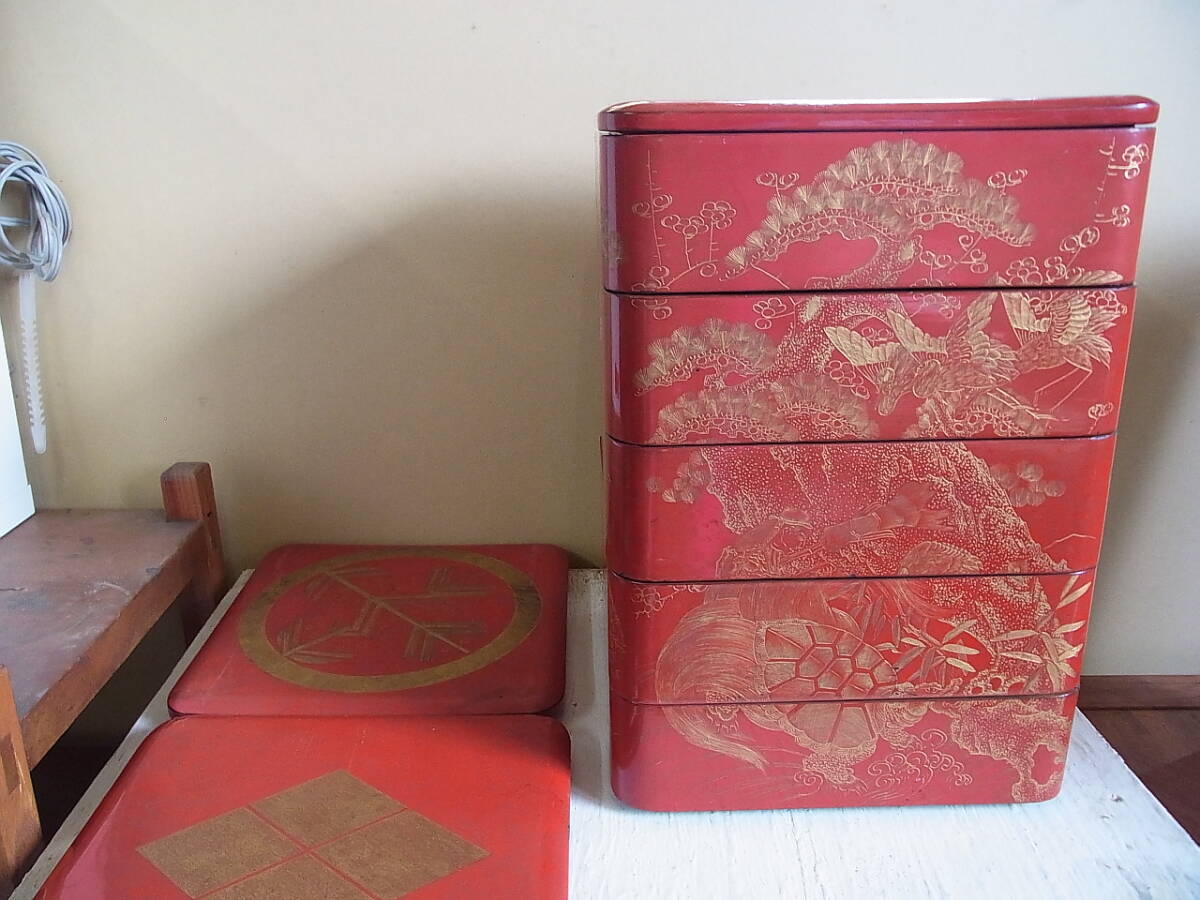 - 傷みあり・現状☆重箱 三段~五段重 和食器 弁当箱 おせち お重 工芸品 漆器 蒔絵 お正月 箱入り