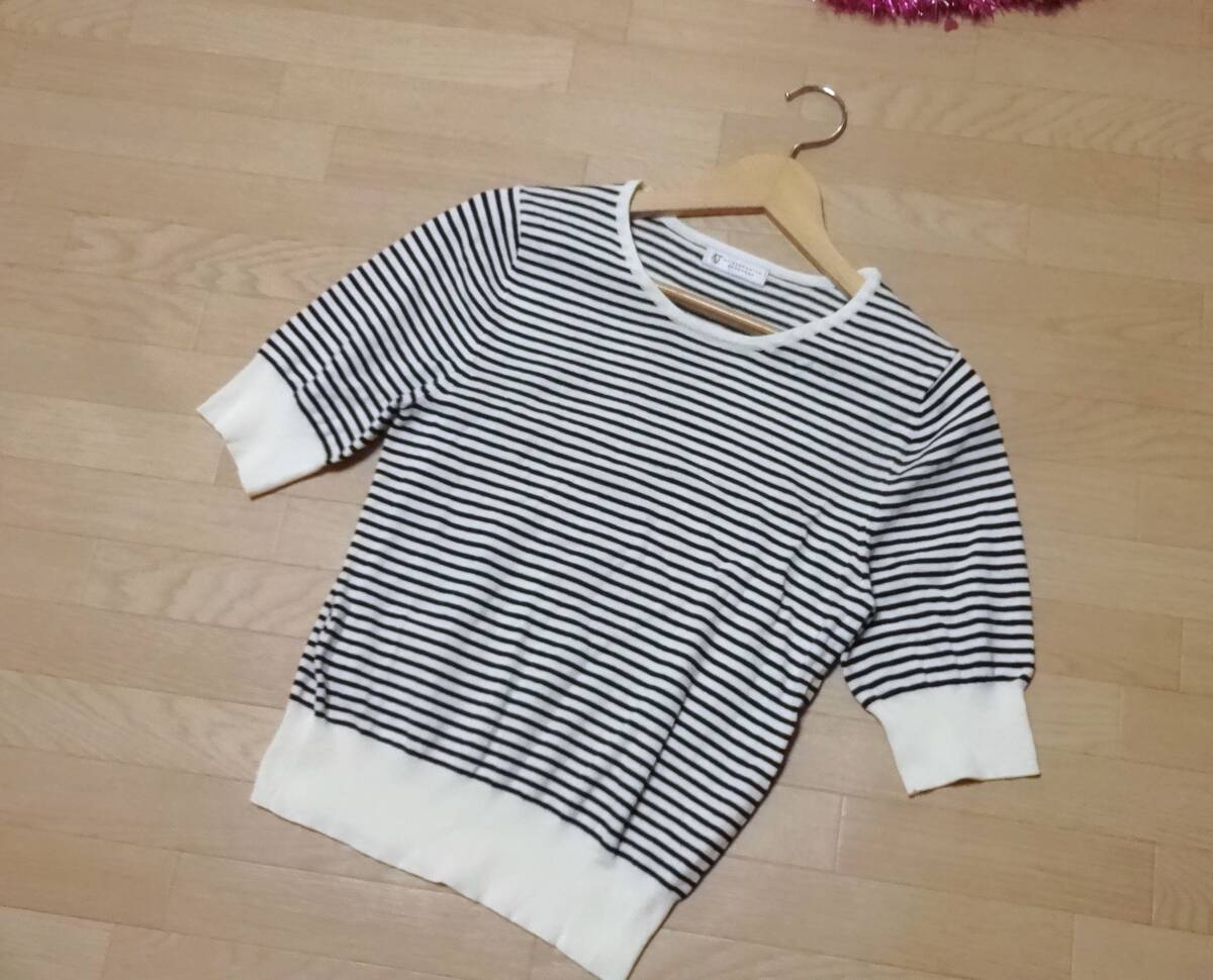 - 【AFTERNOON TEA】白黒半袖ニットカットソーM★新品同様♪
